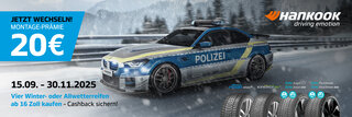 Beim Kauf von 4 Hankook Winter- oder Allwetterreifen ab 16 Zoll und Inanspruchnahme einer Montageleistung erhalten Sie ein Rückerstattung der Montagekosten in Höhe von 20.- €.